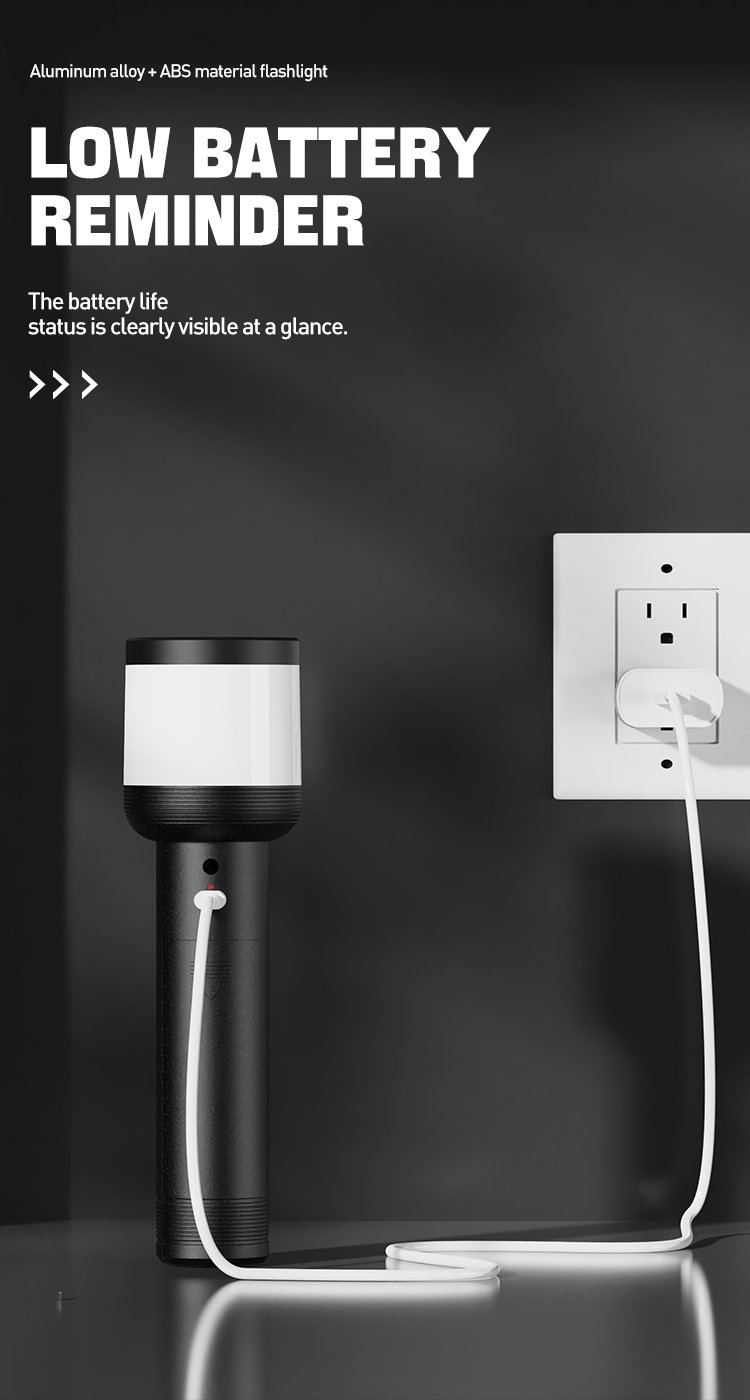 - Press the switch to switch between strong light, weak light, strobe and camping light functions.