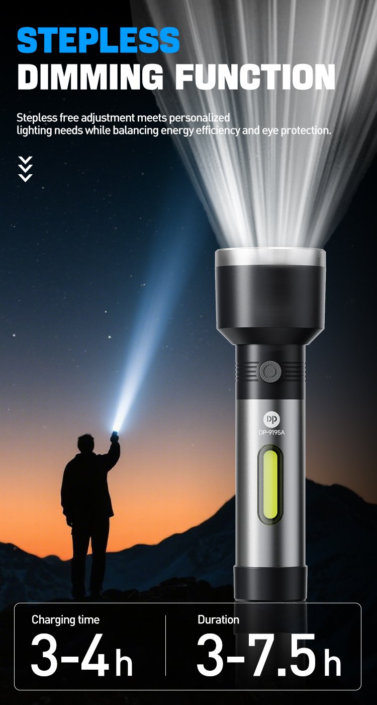 We are DP group, listed company and high-tech enterprise in China, with 4 factories of intelligent manufacturing covering 350,000 square meters. We specialize in LED flashlight, emergency lighting, and other lighting products for over 20 years.