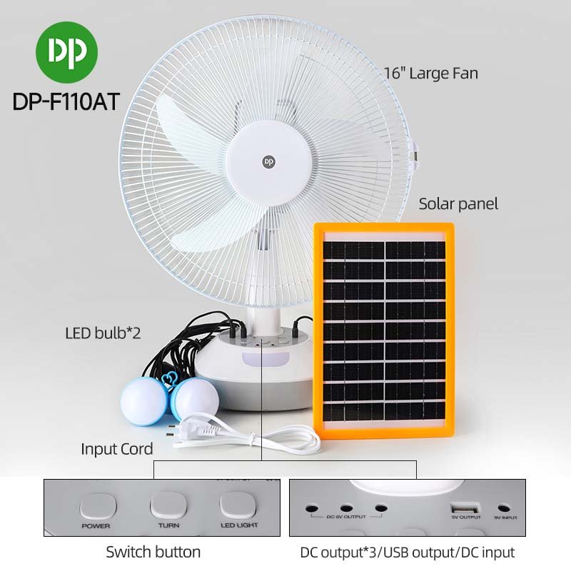 Easy-Maintenance Detachable Battery: Unlike built-in battery fans, the DP-F110AT features a user-accessible battery compartment (6V 4500mAh Lead-acid), allowing for easy replacement and extended product lifespan.