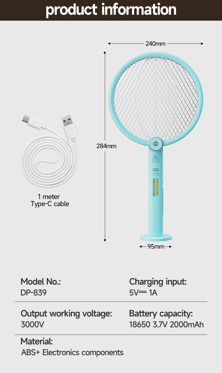 Foldable Electric Mosquito Swatter Bat with Light DP-839