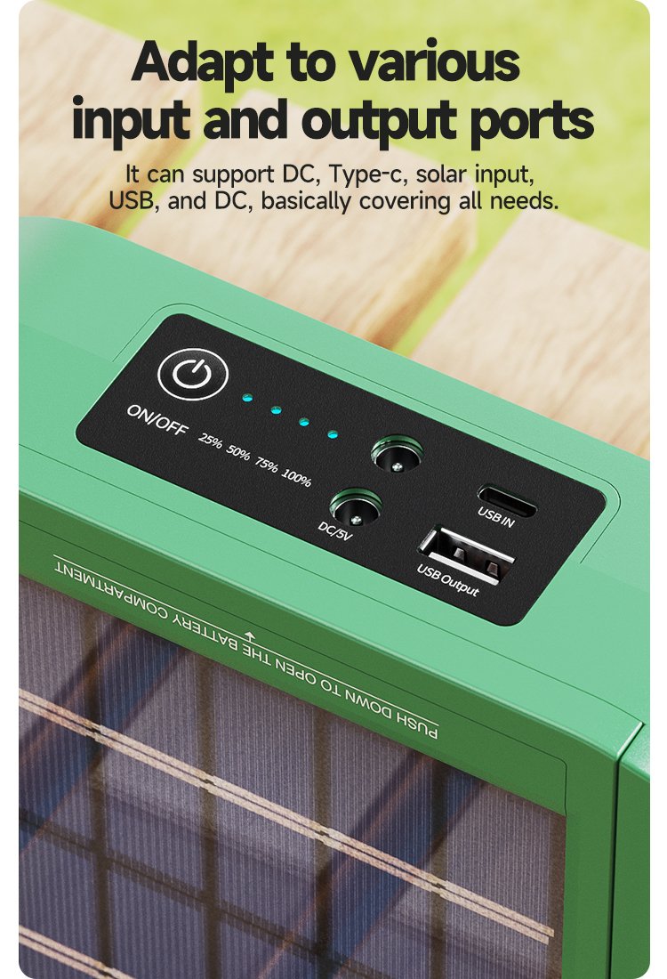 Equipped with multiple input and output ports – DC, Type-C, solar charging, USB and more – covering almost every power demand.