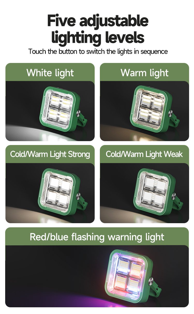 Choose the perfect light with five dimming modes. Stay safe with red and blue flashing warning lights, ideal for roadside or emergency use.