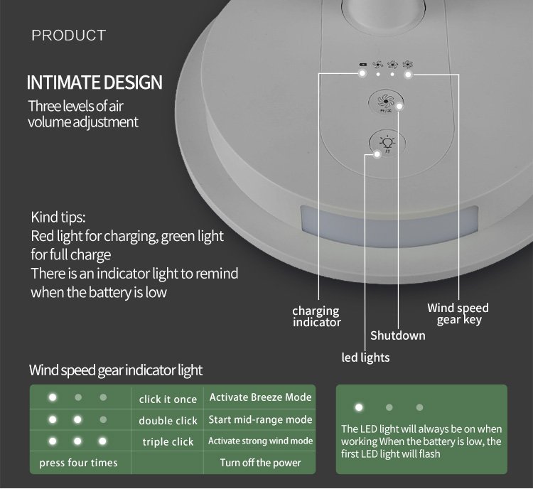 | Wind Mode | Strong/Middle/Weak wind | Working Time | 1/2/3 hours |