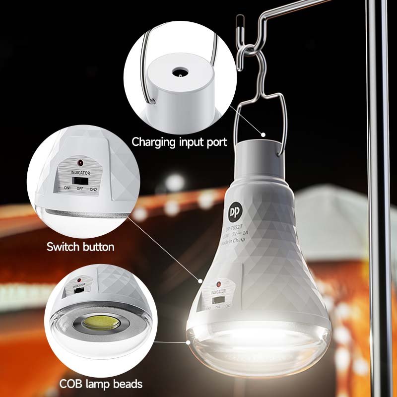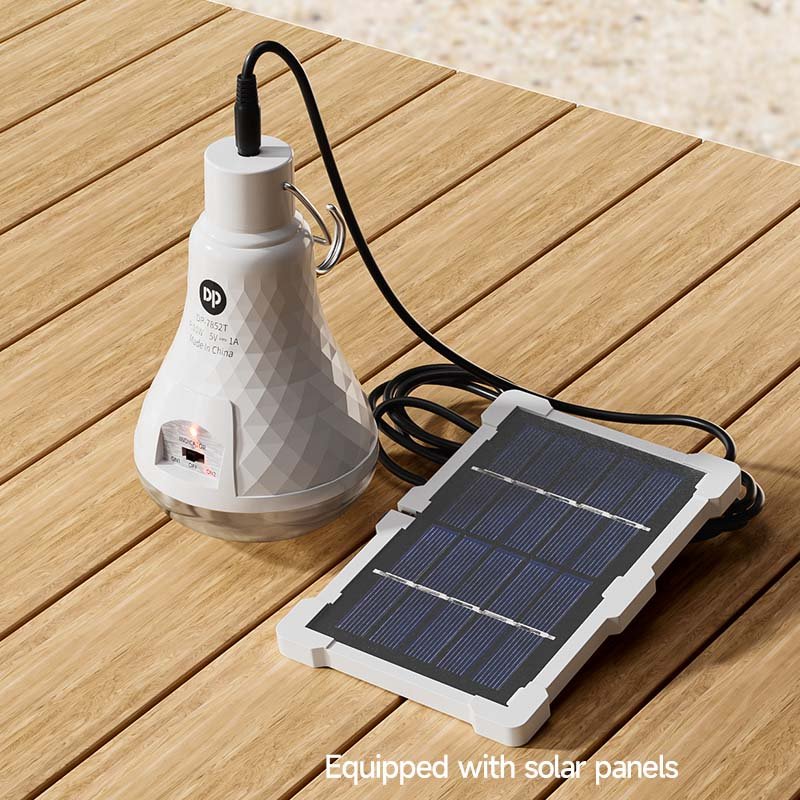 The DP-7852T Solar Emergency Bulb is a compact yet powerful lighting solution designed for outdoor environments, power outages, camping, rural households, and emergency preparedness. Equipped with a 2000mAh rechargeable lithium battery, the bulb delivers up to 4 hours of continuous illumination, ensuring reliable lighting whenever and wherever you need it.